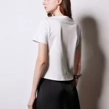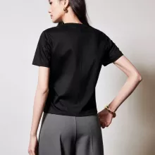 This T-shirt is perfect for any occasion that calls for easy, chic styling. Its simple design makes it an excellent choice for casual outings, from a day of shopping to brunch with friends. Pair it with denim for a laid-back look or dress it up with accessories for a more polished feel. Its breathable material also makes it a great option for warmer weather, keeping you cool and stylish no matter the season. Whether you’re heading to the office or out for a weekend adventure, this T-shirt has you covered.