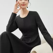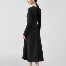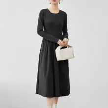 Crafted from a high-quality blend of polyester, spandex, and viscose, this dress offers a soft, breathable, and slightly stretchy feel. The finely knitted fabric ensures both durability and comfort, making it a perfect addition to your cold-weather wardrobe. The O-neckline and long sleeves provide a modest yet modern look, while the solid black color adds a touch of refined elegance.