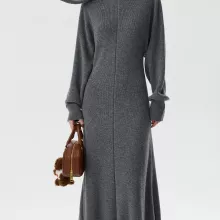 Elevate your winter wardrobe with the Elegant Grey Half-High Neck Knit Dress, a perfect blend of sophistication and comfort. Designed with a luxurious 33.8% wool composition, this dress offers the ultimate cozy feel while exuding effortless style. Its batwing sleeves and A-line silhouette add a touch of contemporary charm, making it a versatile choice for various occasions. Whether you’re lounging at home, heading to the office, or attending a casual outing, this ankle-length dress keeps you chic and comfortable throughout the season.