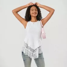 Add a touch of sophistication and charm to your summer outfits. Order your Floral Lace Patchwork Tank Top today!