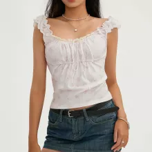 This crop top isn’t just clothing; it’s a statement. The blend of rugged grunge elements with sophisticated lace details offers a perfect mix of rebellion and femininity. The unique print and careful patchwork make it a standout piece that’s sure to turn heads. It’s not just a top; it’s an expression of style and individuality.