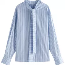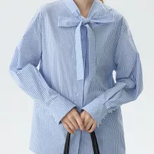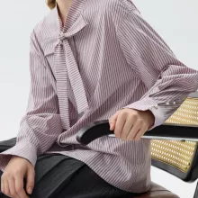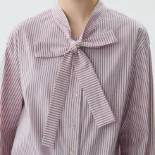 This blouse isn’t just about looks – it’s about feeling great too. The carefully selected fabric composition provides a comfortable fit without sacrificing style. Whether worn tucked into a pencil skirt for a polished office look or paired with jeans for a more laid-back style, this blouse is versatile enough for many occasions. The bow collar and striped pattern make it a standout piece that adds flair to your outfit while remaining sophisticated.