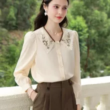 Step into the new season with a blend of sophistication and timeless charm. This elegant blouse, designed for the stylish woman, brings together classic French embroidery with a contemporary touch. The puff sleeves, adorned with delicate floral embroidery, add a vintage vibe that feels both luxurious and versatile. Perfect for autumn and winter, this blouse effortlessly transitions from office meetings to evening dinners, keeping you looking polished and refined.