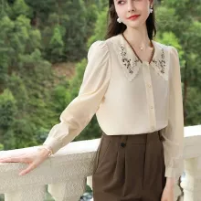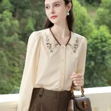 This versatile blouse is perfect for professional office settings, casual outings, or even a night out. Its retro design with modern elements, like the puff sleeves and delicate embroidery, gives you the flexibility to style it for various occasions. Whether paired with tailored pants for a business meeting or jeans for a relaxed weekend look, this blouse will be a go-to piece in your autumn and winter wardrobe.