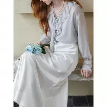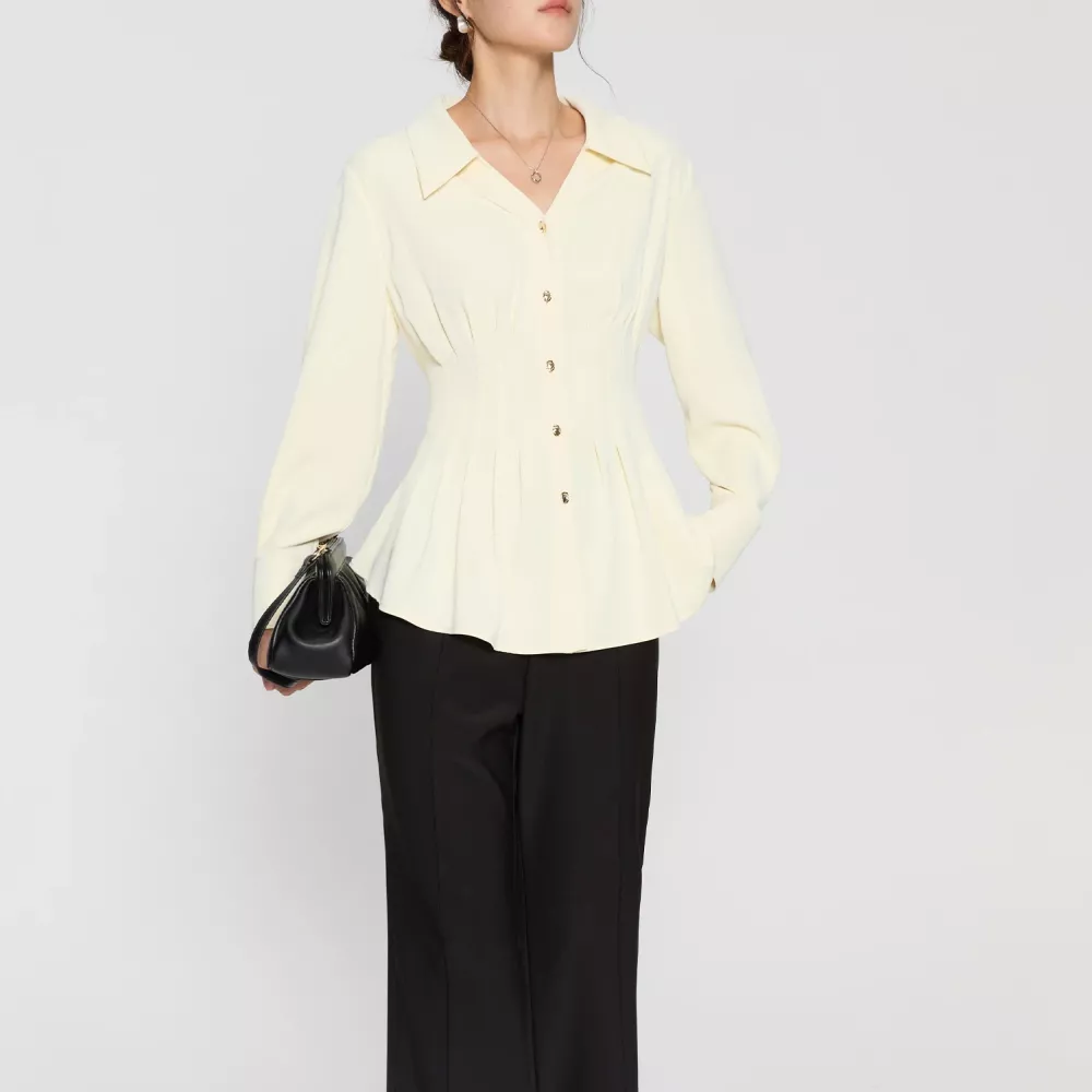 Made from a high-quality blend of 96% polyester and 4% spandex, this blouse is soft to the touch, lightweight, and breathable. The fabric ensures durability while maintaining a comfortable feel against the skin. Its full-length drop sleeves provide a relaxed yet tailored look, complemented by the single-breasted closure for easy wear. Perfect for autumn and winter, this blouse offers the right balance of warmth and style.
