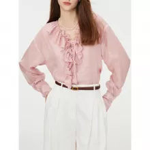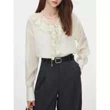 This blouse and vest set is perfect for transitional seasons, providing just the right amount of warmth and sophistication. Pair it with tailored pants or jeans for a polished look that suits both professional and laid-back settings. With its flattering loose fit and elegant ruffle details, this top is sure to become a favorite in your wardrobe.