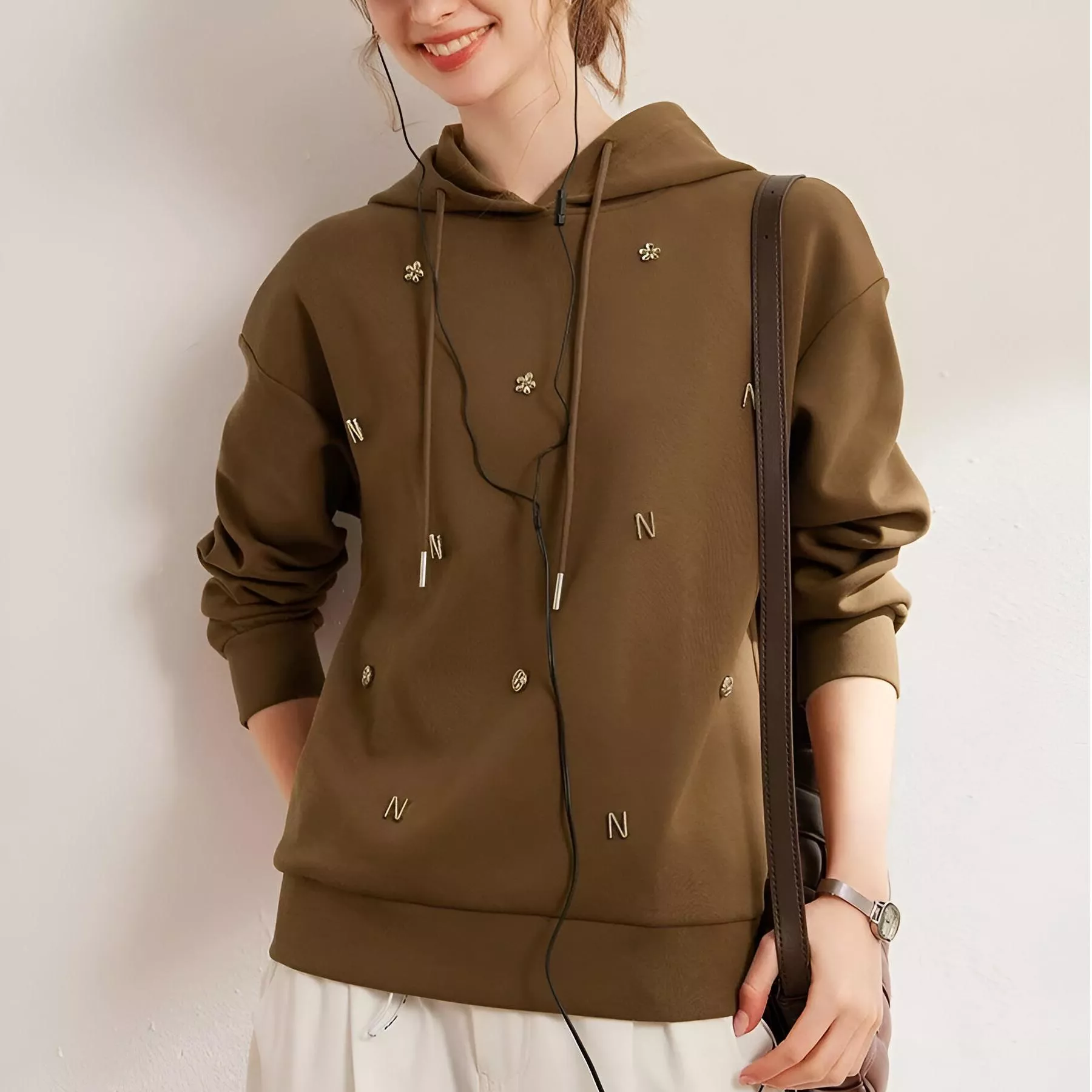 Whether you’re heading out for a casual day with friends or looking for a cozy option for your work-from-home wardrobe, this pullover hoodie is a perfect choice. The regular length pairs well with jeans, skirts, or leggings, making it a versatile piece that can easily transition from day to night. The loose fit ensures comfort, while the embroidery detail sets it apart from ordinary hoodies.