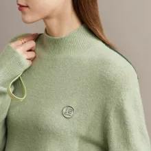 This sweater stands out due to its impeccable craftsmanship and stylish design. The embroidery adds a unique touch that sets it apart from ordinary sweaters. The mock neck provides a cozy feel, perfect for keeping warm during the cooler months. Its loose fit ensures a relaxed, yet polished appearance.