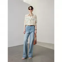 What sets this blouse apart is its commitment to quality and style. The 100% Mulberry silk fabric not only feels luxurious but also provides a flattering drape that complements the middle-aged, office lady style. The unique print and classic design make it a timeless piece in any fashion-forward wardrobe.