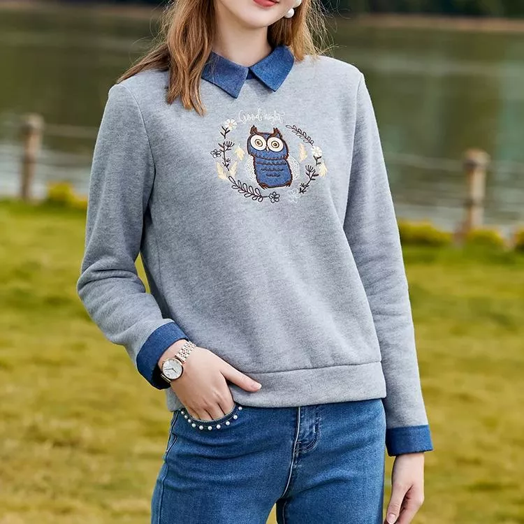 Women’s Color Blocking Splicing Fake Two Piece Slim Fit Long Sleeve T-shirt