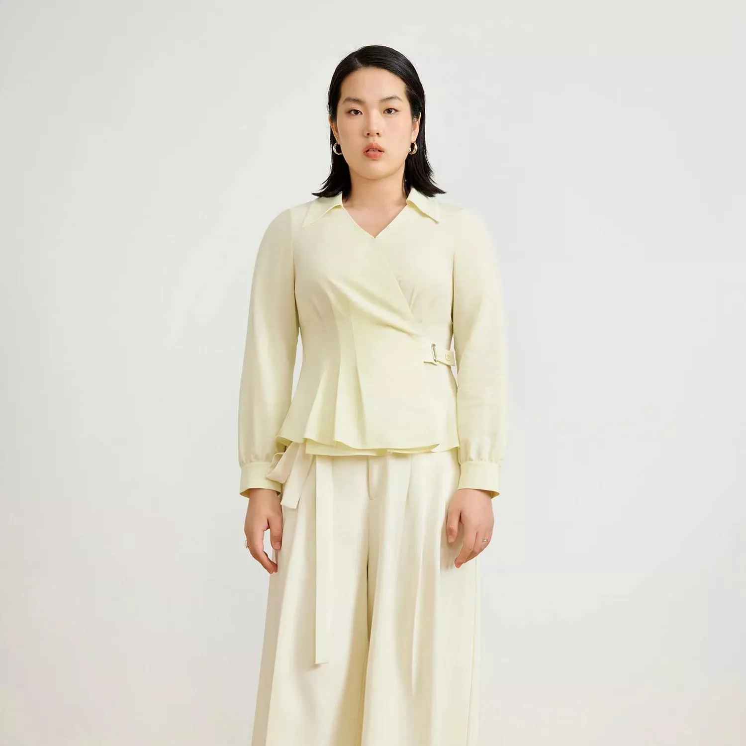 Women Beige Chiffon Blouse with Waist Tie for Office and Casual Wear