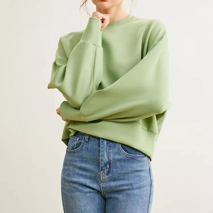 Women’s Drop-Shoulder O-Neck Casual Pullover Sweatshirt – Soft Viscose Blend